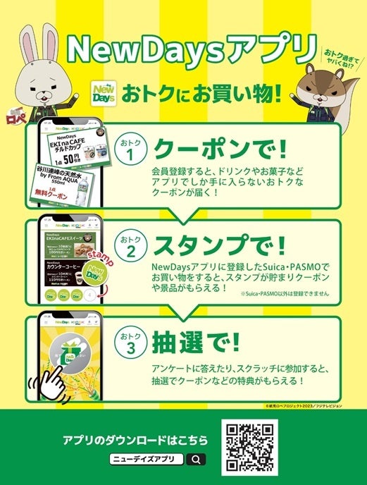 ※事前にNewDaysアプリの会員登録と、アプリにSuica・PASMOのID番号の登録が必要です。